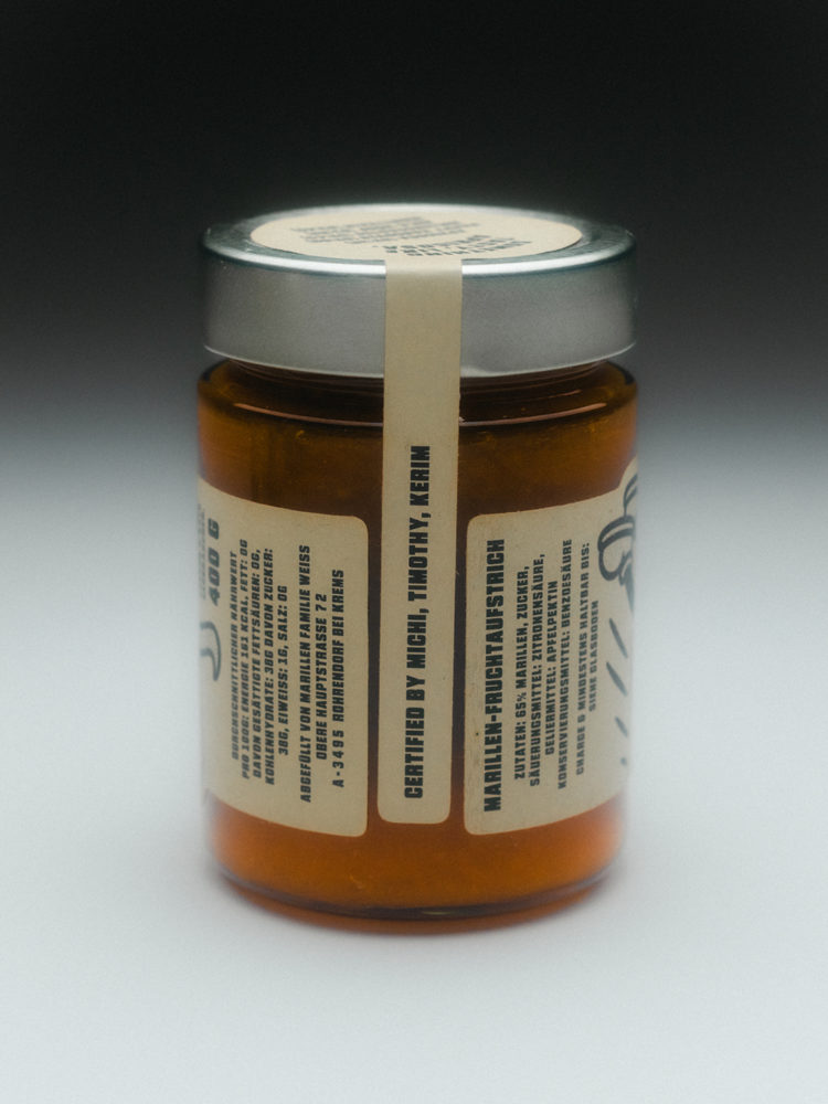 A special edition celebrating their EP “Apricosa” (2022). Jam & schnapps filled by Marillen Familie Weiss, from Austria’s iconic Wachau region. Hand-numbered and certified by the band.