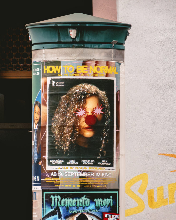 Film poster for “How to be Normal and the Oddness of the Other World” (2025), directed by Florian Pochlatko, starring Luisa-Céline Gaffron, Elke Winkens, and Cornelius Obonya, with Felix Pöchhacker, David Scheid, and Lion Thomas Tatzber. The film had its world premiere in the Perspectives section at the 75th Berlin International Film Festival (Berlinale). Produced by Golden Girls Film, the movie follows a young woman navigating life after leaving a psychiatric hospital, blending drama, satire, and surreal visual elements. The poster was featured by Page Online as part of their “Best of Film Posters” selection.